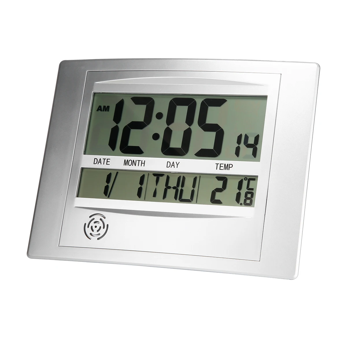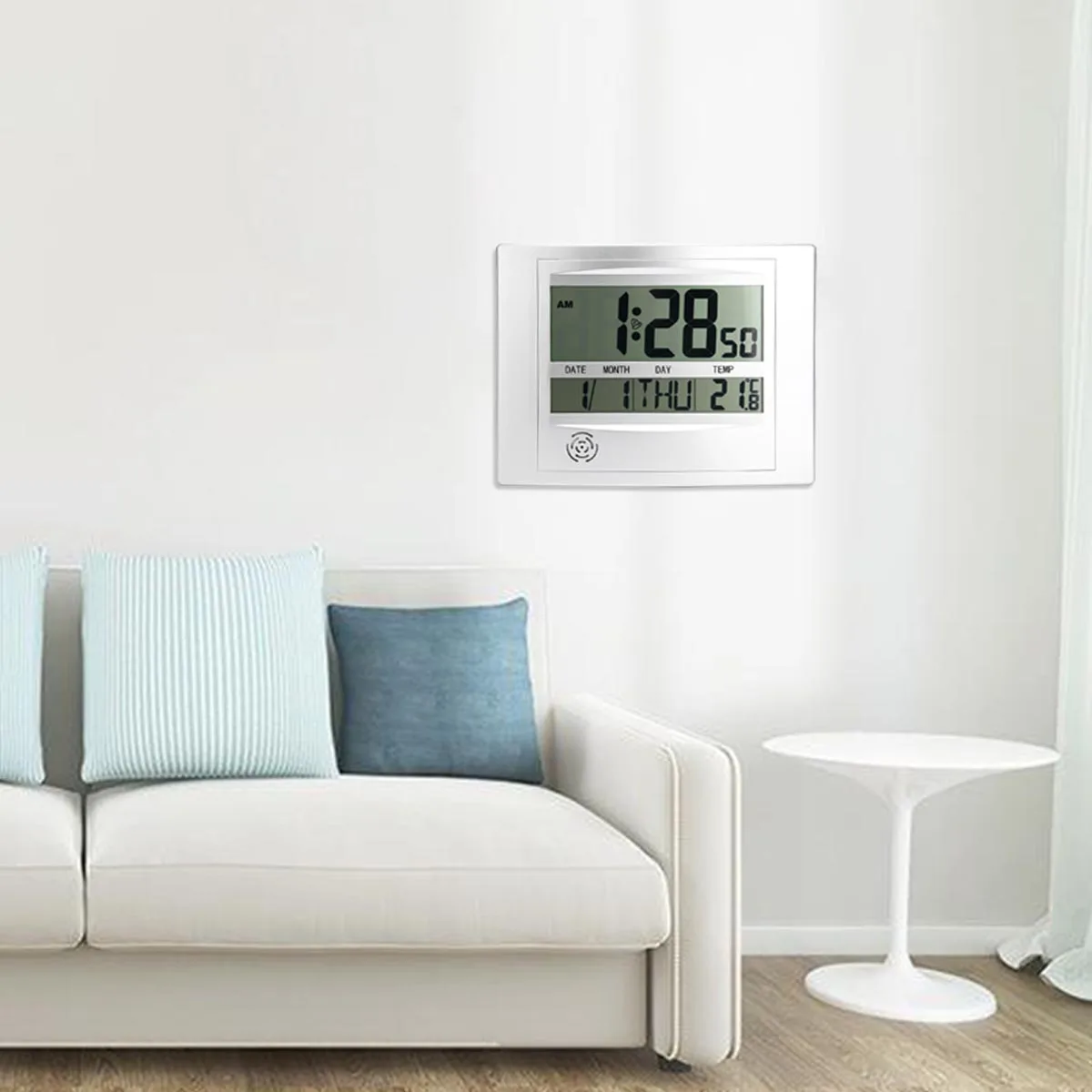 1pc LCD Thermometer Wall Clock Multipurpose Electronic Temperature Calendar Alarm Bedside Clock Mor